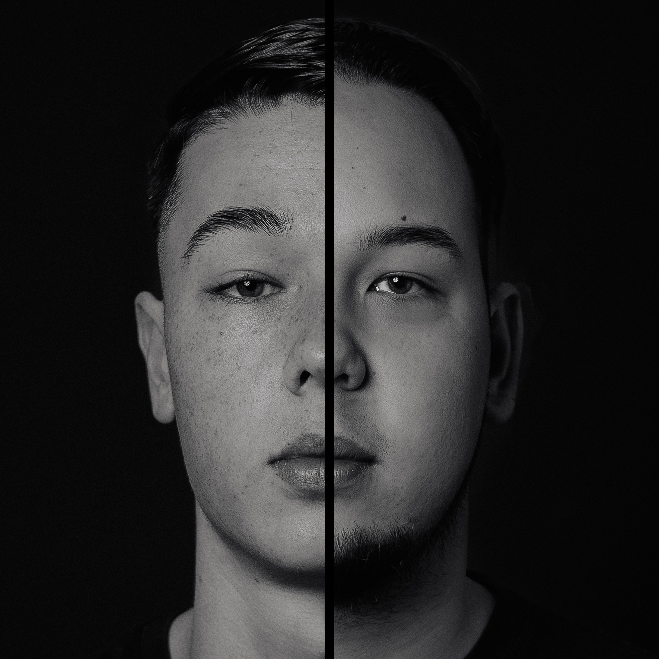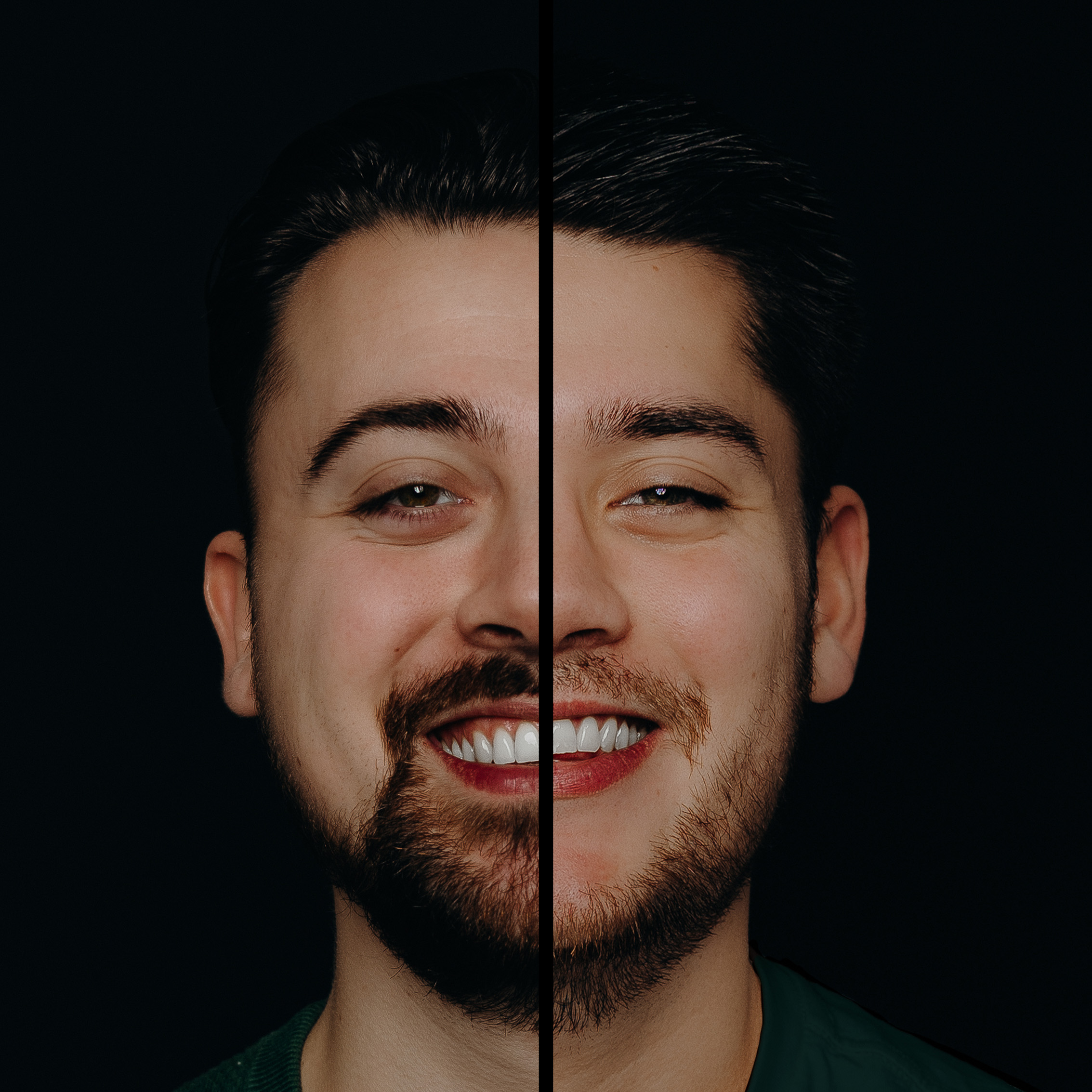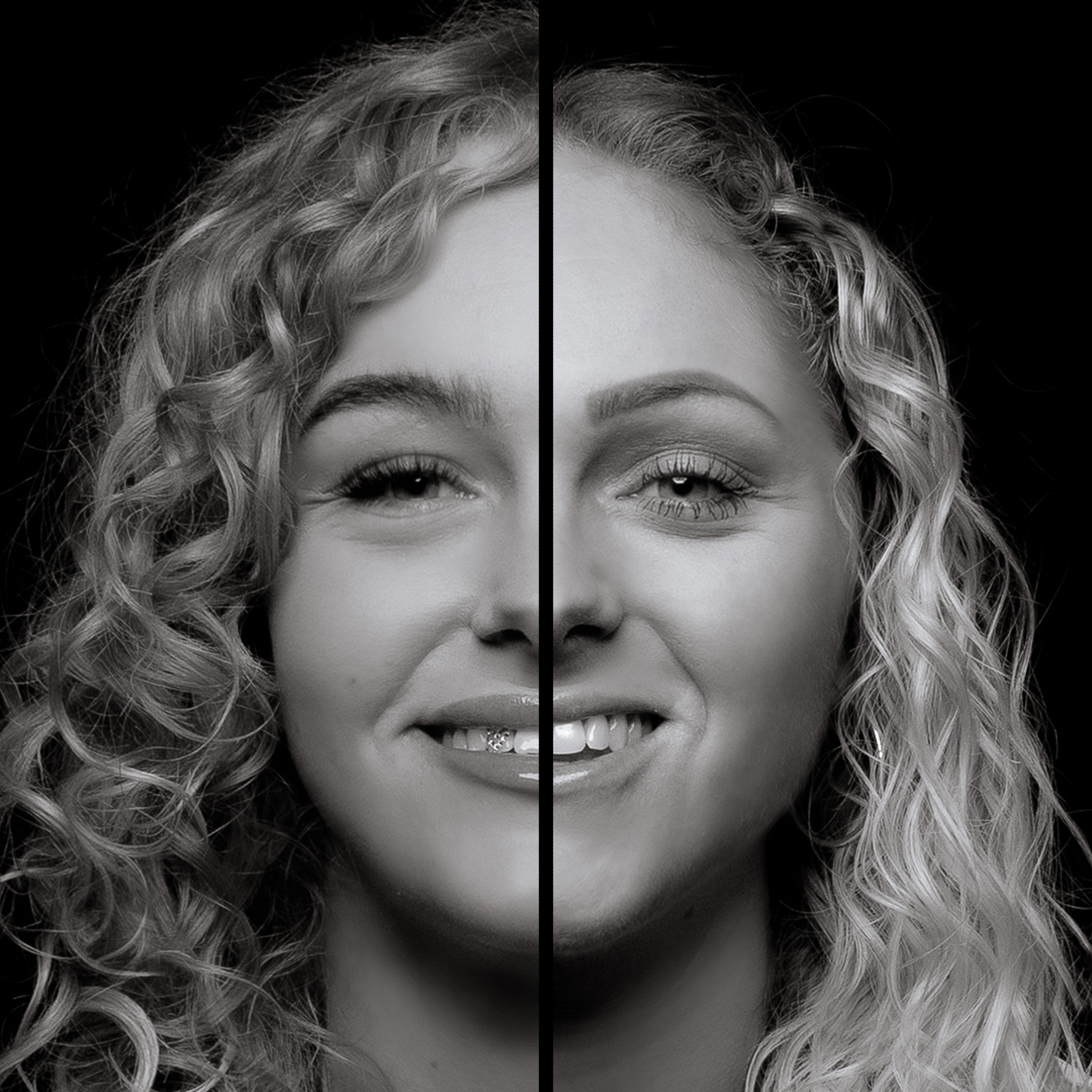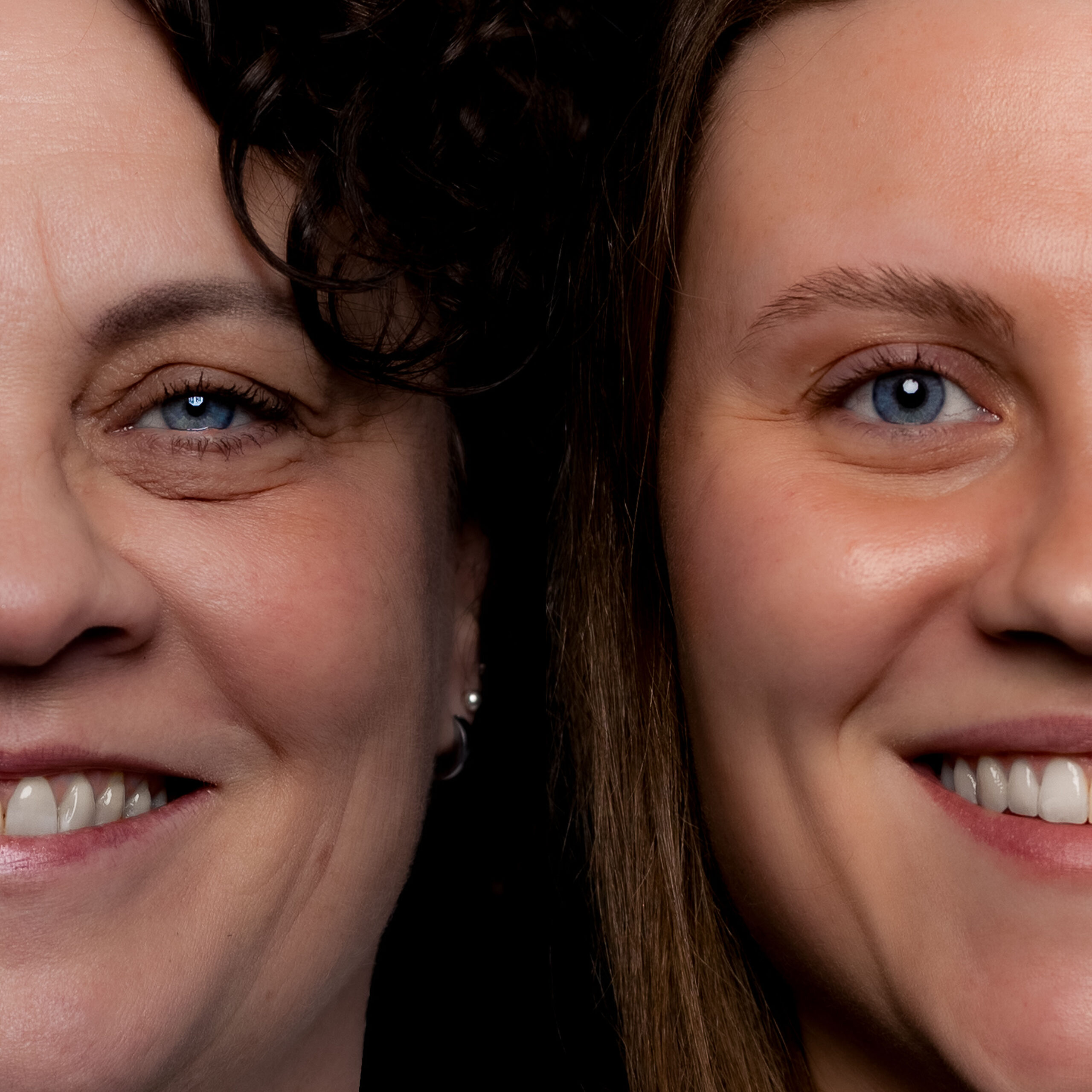 Met het 2-in-1 portret staan jullie gezichten naast elkaar met een zwarte lijn ertussen. In het duo portret staan de helften van jullie gezichten aan de buitenkant van het beeld. Scroll naar beneden voor de voorbeelden.